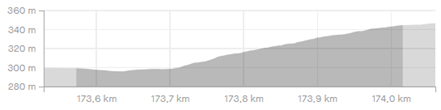 Il segmento "Le Tolfe" inizia al Km 173 per il percorso Gold e al Km 129 per il percorso Silver e al Km 73 per il percorso Medium